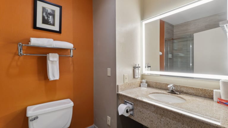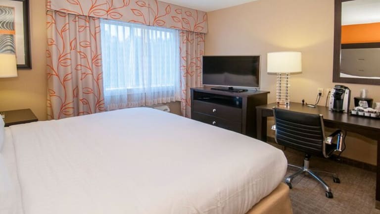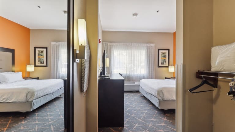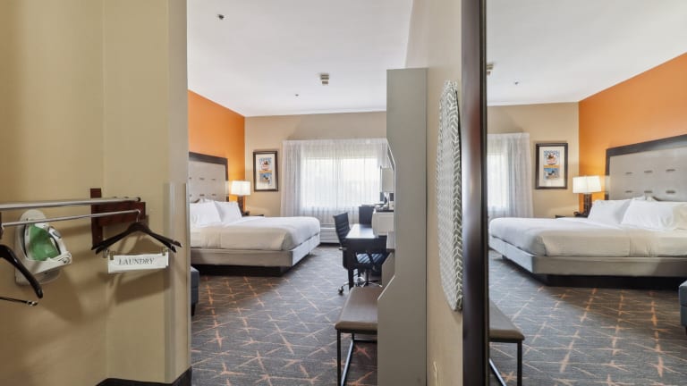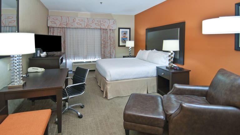 Die 91 Nichtraucherzimmer im Slidell Holiday Inn Hotel & Suites sind komfortabel und modern eingerichtet. Jedes Zimmer verfügt über Annehmlichkeiten wie eine Mikrowelle, einen Kühlschrank und eine Kaffeemaschine, um Ihren Aufenthalt so angenehm wie möglich zu gestalten. Entspannen Sie sich beim Fernsehen mit Kabelkanälen oder erledigen Sie geschäftliche Angelegenheiten am Holzschreibtisch.
