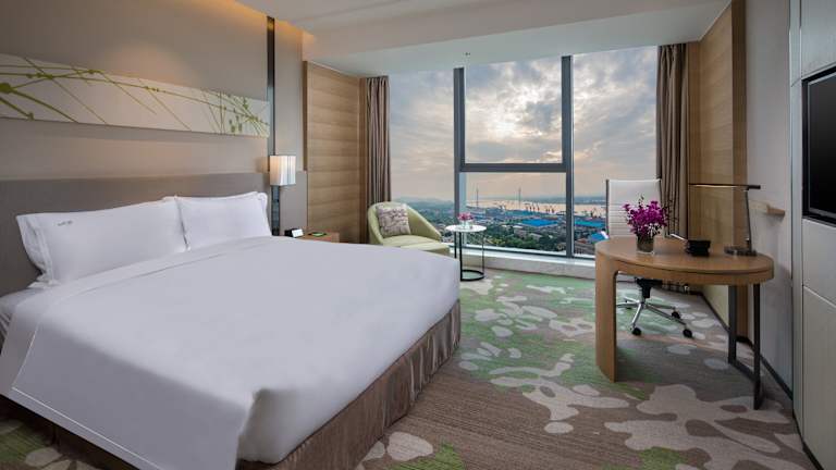 Das Holiday Inn Nanjing Harbour bietet komfortable Unterkünfte mit grundlegenden Annehmlichkeiten wie Telefon und WLAN. Einige Zimmer verfügen auch über eine Küche mit Kühlschrank, Mikrowelle und Minibar.