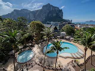 Das Holiday Inn Resort Krabi Ao Nang Beach von IHG Hotel liegt inmitten einer tropischen Gartenanlage auf einem Hügel in der Innenstadt von Ao Nang. Der Aonang Beach ist nur 5 Gehminuten entfernt und bietet einfachen Zugang zu den wichtigsten Sehenswürdigkeiten der Stadt. In der Nähe des Resorts finden Sie auch Restaurants, Cafés und Einkaufsmöglichkeiten. Der Flughafen Krabi ist etwa 27 km entfernt, eine Transferzeit von ca. 40 Minuten.