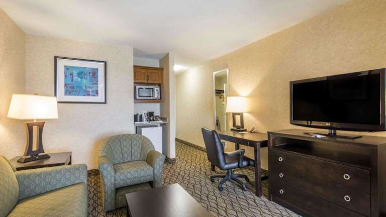 Die komfortabel eingerichteten Zimmer im Clarion Hotel & Conference Center Sherwood Park bieten alles, was Sie für einen angenehmen Aufenthalt benötigen. Jedes Zimmer verfügt über einen Kühlschrank und eine Mikrowelle, so dass Sie Ihre eigenen Mahlzeiten zubereiten können. Kaffee- und Teezubehör steht ebenfalls zur Verfügung, um Ihren Morgenkaffee oder Tee zu genießen. Kostenloses WLAN ist in allen Zimmern verfügbar, so dass Sie problemlos mit Freunden und Familie in Kontakt bleiben können.