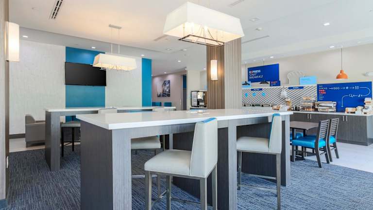 Beginnen Sie Ihren Tag im Holiday Inn Express & Suites mit einem kostenlosen Frühstück zum Mitnehmen. Genießen Sie eine Auswahl an köstlichen Speisen und Getränken, um gestärkt in den Tag zu starten. In der Umgebung des Hotels finden Sie auch eine Vielzahl von Restaurants und Cafés, in denen Sie lokale und internationale Küche genießen können.