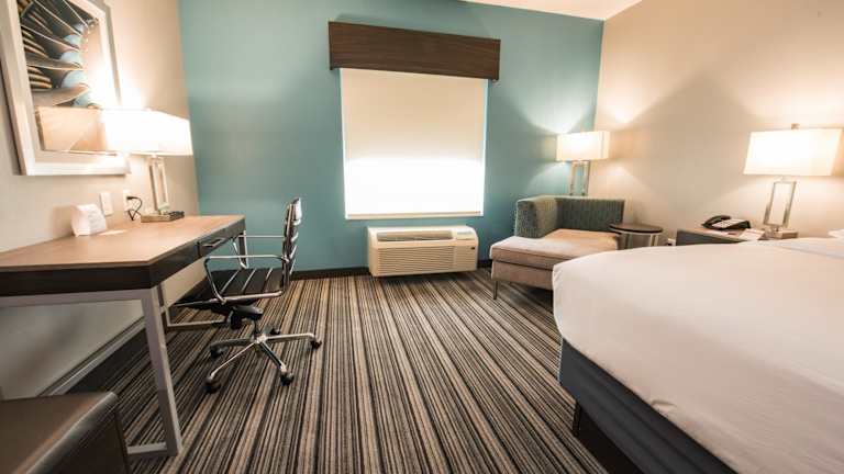 Die Zimmer im Holiday Inn Express & Suites sind komfortabel und modern eingerichtet. Jedes Zimmer verfügt über einen gemütlichen Sitzbereich, einen Flachbild-Kabel-TV und ein eigenes Badezimmer mit Haartrockner und Badewanne. Eine Klimaanlage sorgt für angenehme Temperaturen und ein Schreibtisch bietet Platz zum Arbeiten.
