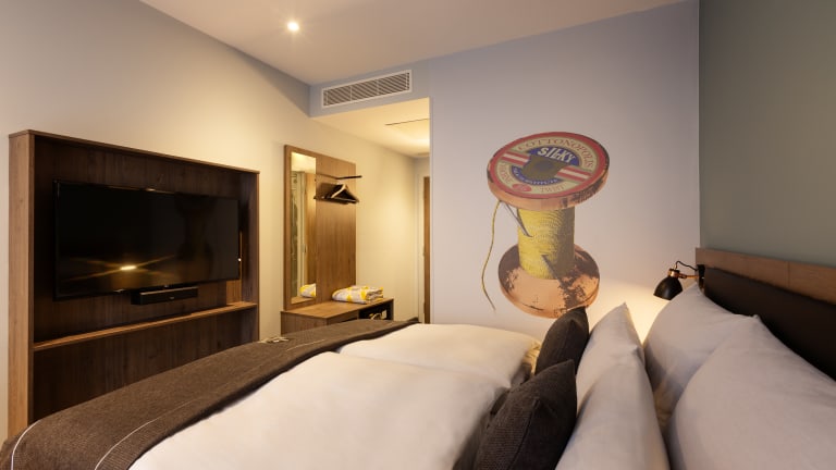 Loom ist das englische Wort für Webstuhl und erinnert an das große industrielle Erbe der Stadt Manchester und ihre unzähligen Webereien. Starte deinen City Trip im the niu Loom und erlebe bereits beim Check-In die Besonderheiten der pulsierenden Metropole Manchester. In Anlehnung an das industriereiche Erbe der Stadt, dreht sich im Hotelinneren alles um die damals weit verbreiteten Webereien (Loom = Webstuhl). Interior im Industrial Style und grafische Webmuster spiegeln den handwerklichen Charakter wider, während liebevoll platzierte Twist-Details zum Schauen und Staunen einladen. Auf deinem Zimmer erwarten dich neben weiteren dreidimensionalen Design-Highlights auch ein Flatscreen, eine Bluetooth-Soundbox und ultraschnelles WiFi. Entspanne in unserer Living Lobby, bevor du dich unter die „Mancs“ – so werden die Einwohner Manchesters auch genannt – mischst, um zum Beispiel die bekannte Townhall zu bewundern.