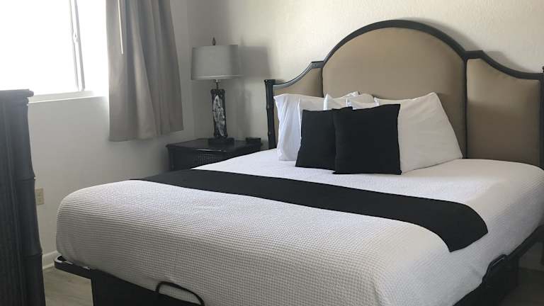 Die Studios im Holiday Isles Resort sind schlicht, aber gemütlich eingerichtet und bieten alles, was Sie für einen angenehmen Aufenthalt benötigen. Jedes Studio verfügt über eine voll ausgestattete Küche, in der Sie Ihre eigenen Mahlzeiten zubereiten können, sowie eine Terrasse, auf der Sie die warmen Sonnenstrahlen Floridas genießen können. Zur weiteren Ausstattung gehören ein Flachbild-Kabel-TV und ein komfortabler Sitzbereich.