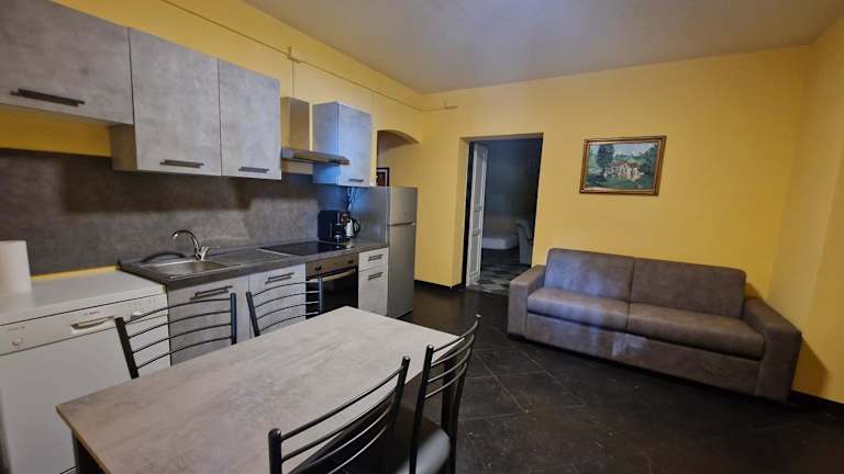 Die Ferienwohnung besteht aus einem Schlafzimmer und einem Wohnzimmer. Sie ist klimatisiert und verfügt über eine voll ausgestattete Küche mit Kühlschrank und Kaffeemaschine. Das Badezimmer ist mit einem Bidet und einer Dusche ausgestattet. Handtücher und Bettwäsche werden bereitgestellt.