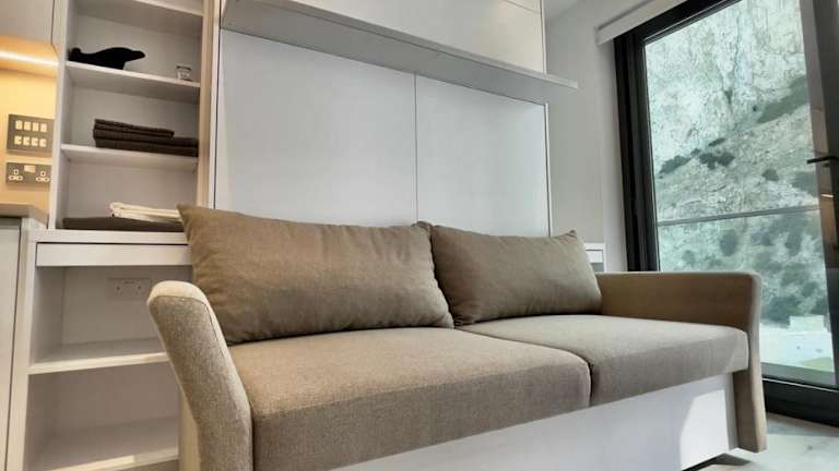 Das Studio mit Balkon und Blick auf den Felsen bietet komfortable Unterkünfte für Ihren Aufenthalt in Gibraltar. Das klimatisierte Apartment verfügt über einen geräumigen Sitzbereich und eine voll ausgestattete Küche mit Kühlschrank. Genießen Sie Ihre Mahlzeiten auf dem Balkon und entspannen Sie sich in Ihrem eigenen privaten Rückzugsort. Handtücher und Bettwäsche werden im Apartment gestellt, um Ihnen einen angenehmen Aufenthalt zu ermöglichen. Kostenloses WLAN steht Ihnen zur Verfügung, so dass Sie mit Ihren Lieben in Kontakt bleiben können.