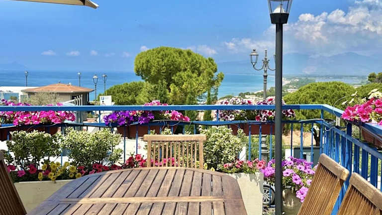 Die Unterkunft liegt etwa 400 m vom Strand Lido Sperlonga entfernt und bietet einen Blick auf die Berge sowie das Meer. Weitere Strände, wie die Spiaggia Dell'Angolo und Spiaggia Bazzano, sind in der Nähe zu finden. Der nächstgelegene Flughafen ist Rom-Ciampino, etwa 111 km entfernt.