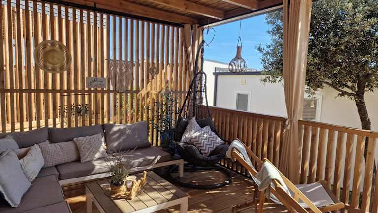 Das Chalet umfasst zwei Schlafzimmer, ein Wohnzimmer sowie eine voll ausgestattete Küche mit Kühlschrank und Kaffeemaschine. Zudem gibt es zwei Badezimmer mit Dusche und Haartrockner. Klimaanlage, Bettwäsche und Handtücher werden bereitgestellt.