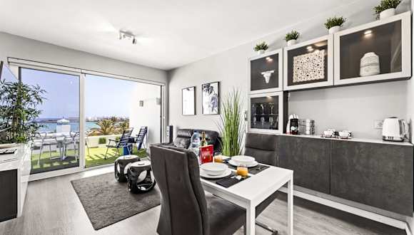 Holyhome cucharas beach bietet Unterkunft in Form einer Ferienwohnung, die einen Balkon sowie eine Terrasse mit Poolblick umfasst. Die Unterkunft verfügt über eine Bar und WLAN in allen Bereichen.