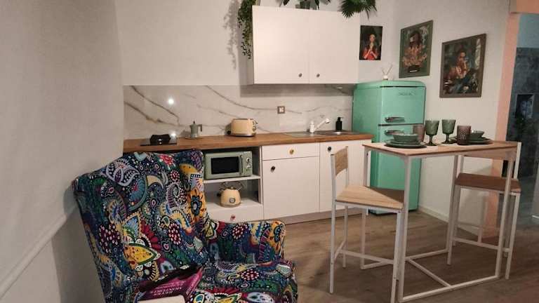 Die Ferienwohnung bietet eine Unterkunft mit einem Schlafzimmer, einer Küche, die mit einem Kühlschrank und einer Mikrowelle ausgestattet ist, sowie einem Badezimmer mit Dusche, Haartrockner und Waschmaschine. Handtücher und Bettwäsche werden zur Verfügung gestellt.