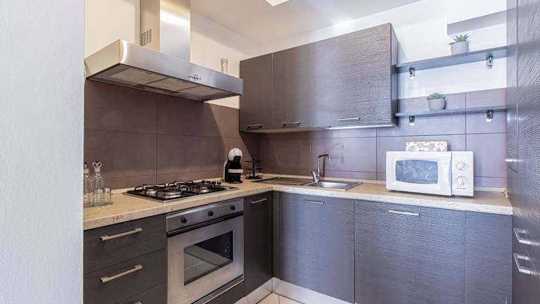 Die Ferienwohnung umfasst zwei Schlafzimmer, ein Wohnzimmer sowie eine voll ausgestattete Küche, die mit einem Kühlschrank und einer Kaffeemaschine ausgestattet ist. Das Badezimmer verfügt über ein Bidet und eine Dusche. Handtücher und Bettwäsche stehen den Gästen zur Verfügung. Internet und Klimaanlage sind ebenfalls verfügbar.