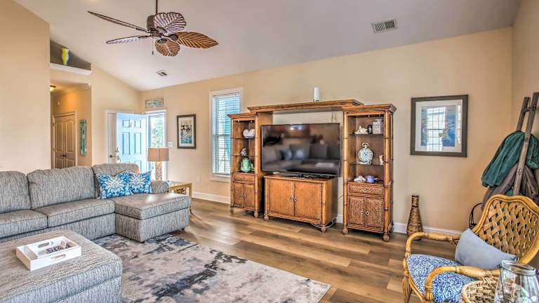 Das Beachy Bermuda Bay Getaway Near Shopping and Golf! ist die perfekte Unterkunft für Ihren Aufenthalt in Myrtle Beach. Mit seiner günstigen Lage in der Nähe von Einkaufsmöglichkeiten, Golfplätzen und den wichtigsten Sehenswürdigkeiten der Stadt bietet das Ferienhaus alles, was Sie für einen unvergesslichen Urlaub benötigen. Genießen Sie den Komfort von 5 Schlafzimmern, einer voll ausgestatteten Küche und einem Balkon mit herrlichem Seeblick. Das kostenfreie WLAN ermöglicht es Ihnen, mit Ihren Lieben in Kontakt zu bleiben, während Sie die Annehmlichkeiten und den Charme dieses Ferienhauses genießen.
