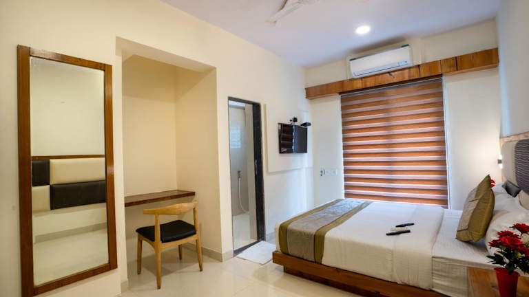 Das Home2 Suites and Service Apartments, Mumbai Airport in Mumbai ist die perfekte Wahl für Reisende, die eine komfortable Unterkunft mit allen Annehmlichkeiten suchen. Die geräumigen Apartments bieten kostenfreies WLAN, einen Flachbild-TV und einen Balkon oder eine Terrasse. Genießen Sie das tägliche Frühstück mit einer Auswahl an kontinentalen, asiatischen oder vegetarischen Speisen. Entspannen Sie im Garten oder in der Gemeinschaftslounge und profitieren Sie von der Autovermietung vor Ort. Die Lage des Apartments ist ideal, nur wenige Kilometer von Einkaufszentren und Sehenswürdigkeiten entfernt. Der internationale Flughafen Mumbai ist nur einen Kilometer entfernt.