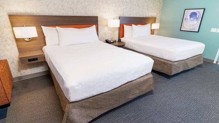 Die 135 Zimmer des Hotels Home2 Suites by Hilton Las Vegas Stadium District bieten den Gästen ein komfortables Zuhause auf Zeit. Die Zimmer verfügen über eine Kochnische mit großem Kühlschrank/Gefrierfach und Herdplatte. Ein kostenloser Internetzugang per Kabel und WLAN ist vorhanden und Flachbildfernseher mit Kabelempfang sorgen für Unterhaltung. Zur Ausstattung gehören auch ein Safe, kostenlose Zeitungen und ein Telefon.