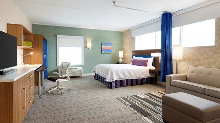Das Home2 Suites by Hilton Milton Ontario bietet moderne und komfortable Suiten. Jede Suite verfügt über kostenfreies WLAN, einen HD-TV und einen ergonomischen Arbeitsbereich. Die voll ausgestattete Küche umfasst einen Geschirrspüler, eine Mikrowelle und einen Kühlschrank. Einige Unterkünfte bieten zusätzlichen Platz und ein Schlafsofa. Die Badezimmer verfügen über eine Dusche und eine Badewanne. Rollstuhlgerechte Zimmer mit barrierefreiem Badezimmer sind ebenfalls verfügbar.