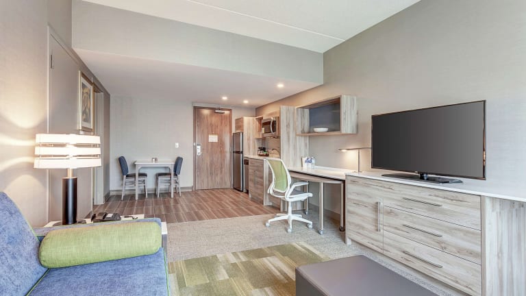 Die 120 Zimmer im Home2 Suites By Hilton Toronto/Brampton, On bieten Ihnen Komfort und eine angenehme Atmosphäre. Jedes Zimmer verfügt über einen Kühlschrank und WLAN. Die Badezimmer sind mit einer Dusche ausgestattet. Es stehen auch rollstuhlgerechte Zimmer mit barrierefreien Bädern zur Verfügung.