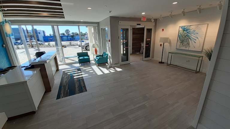Das Home2 Suites Ormond Beach Oceanfront, FL Hotel liegt in Ormond Beach und bietet seinen Gästen eine wunderbare Lage direkt am Strand des Atlantischen Ozeans. Der berühmte Daytona International Speedway ist nur 15 Fahrminuten entfernt und der Daytona Lagoon Water Park erreichen Sie in 8 Fahrminuten. In der Umgebung gibt es zahlreiche Restaurants, Einkaufsmöglichkeiten und Unterhaltungsmöglichkeiten. Der internationale Flughafen Daytona Beach ist nur 14 km entfernt.