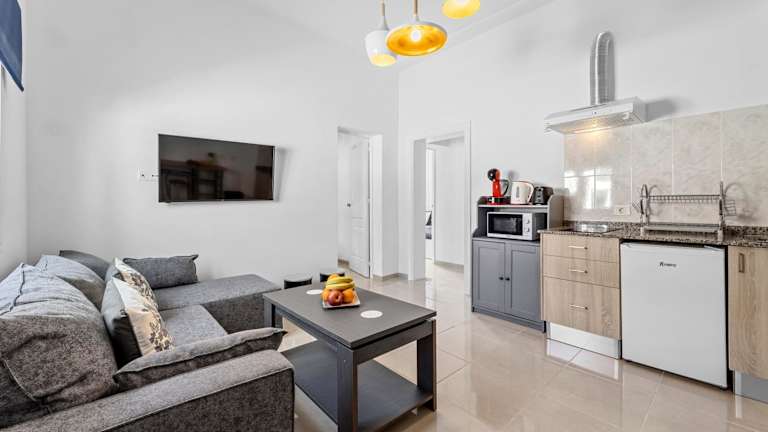 Home2Book Charming Apartment Teguise, Terrace bietet modernen Komfort mit kostenlosem WLAN und einem Flachbild-TV. Die Ferienwohnung umfasst zwei Schlafzimmer, ein Wohnzimmer sowie eine voll ausgestattete Küche mit Kühlschrank und Kaffeemaschine. Das Bad ist mit einer Dusche und kostenlosen Pflegeprodukten ausgestattet. Handtücher und Bettwäsche werden bereitgestellt. Die Unterkunft ist rauchfrei und bietet eine Terrasse zur Nutzung.