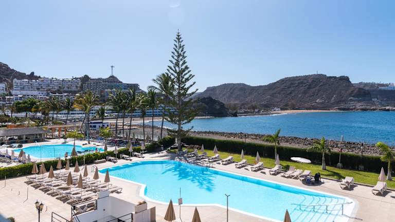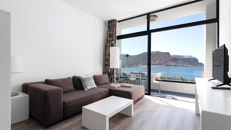Home2Book Gorgeous Oceanfront Studio Mogán, Views bietet eine klimatisierte Ferienwohnung mit Meer- und Bergblick sowie kostenfreiem WLAN. Die Unterkunft verfügt über eine Terrasse, Gartenmöbel und einen Außenpool, der zum Entspannen einlädt. Die Unterkunft ist eine Nichtraucherunterkunft und es sind keine Junggesellen-/Junggesellinnenabschiede erlaubt. Ein kontaktloser Check-in und Check-out wird angeboten.