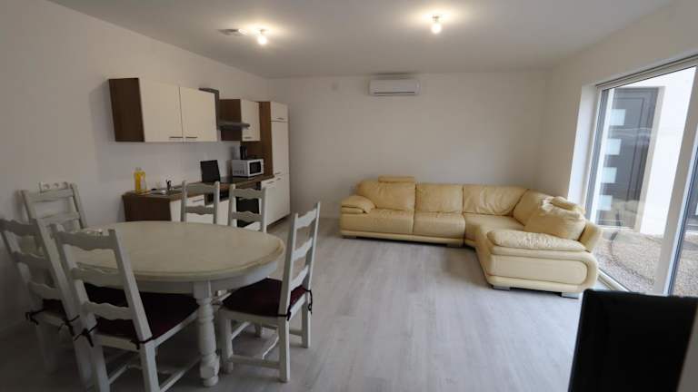 Die Unterkunft besteht aus einer klimatisierten Ferienwohnung mit 3 Schlafzimmern, einer voll ausgestatteten Küche und einem Badezimmer. Zur Ausstattung gehört ein Flachbild-TV. Die Wohnung bietet auch einen kostenlosen Privatparkplatz sowie eine Terrasse. Weitere Annehmlichkeiten umfassen Heizung und behindertengerechte Parkplätze.