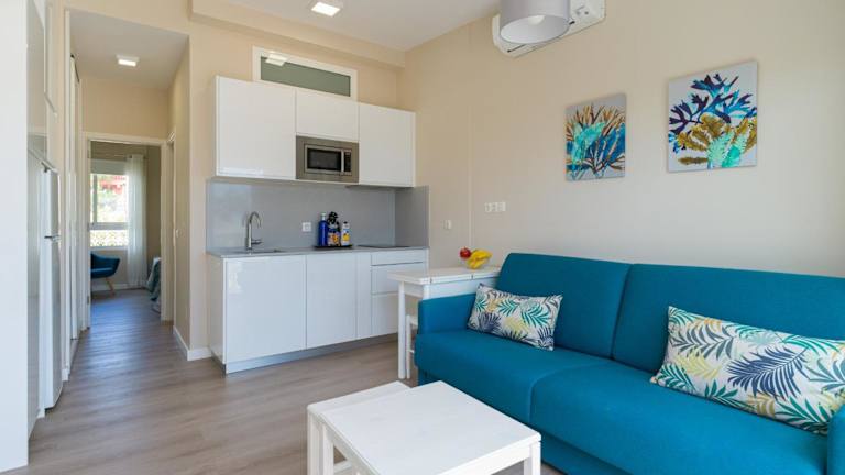 Die Ferienwohnung umfasst 1 Schlafzimmer, ein Wohnzimmer sowie eine voll ausgestattete Küche mit Kühlschrank und Kaffeemaschine. Das Badezimmer verfügt über eine Dusche und einen Haartrockner. Handtücher und Bettwäsche werden zur Verfügung gestellt. Die Unterkunft verfügt über einen Balkon und bietet Meerblick.