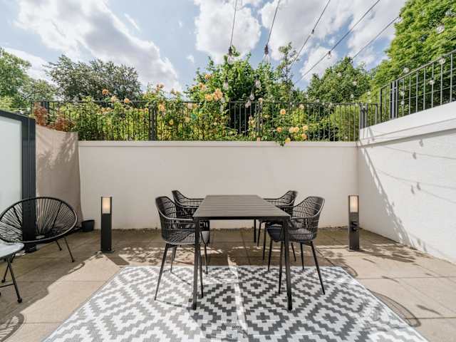 Homely Berlin - Huge Terrace, Modern, Quiet, Near Kudamm ist eine Ferienwohnung in einem Gebäude aus dem Jahr 1960, das eine moderne und ruhige Atmosphäre bietet. Die Unterkunft verfügt über kostenloses WLAN und eine Terrasse, die zum Entspannen einlädt.