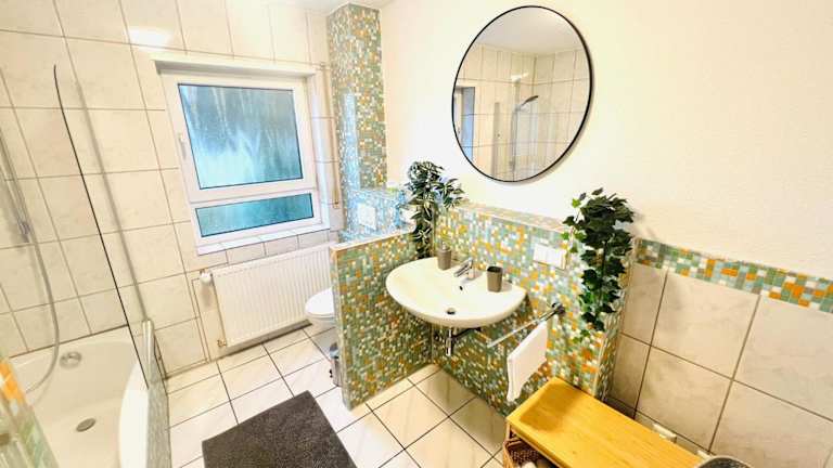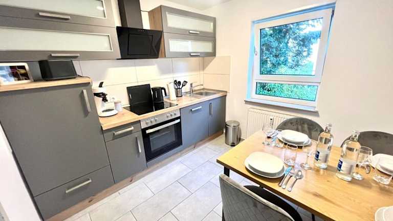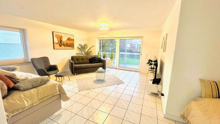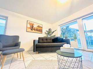 Die Unterkunft Homely - modern - für 4 - Boxspringbetten - Internet bietet eine Ferienwohnung, die mit modernen Annehmlichkeiten ausgestattet ist. Diese Unterkunft verfügt über einen Balkon und bietet eine einladende Atmosphäre mit einem kostenlosen Privatparkplatz und einer Gemeinschaftslounge.