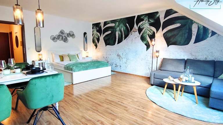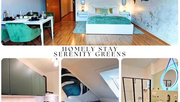 HOMELY STAY Serenity Greens ist ein stylisches Studio-Apartment, das eine komfortable Übernachtungsmöglichkeit mit Stadtblick bietet. Die Unterkunft ist tierfreundlich und hat eine Vielzahl von Annehmlichkeiten, darunter einen kostenlosen Privatparkplatz und kostenfreies WLAN. In der Wohnung gibt es 1 Schlafzimmer und eine gut ausgestattete Küche. Zudem wird darauf geachtet, die Unterkunft nach den Richtlinien der örtlichen Behörden zu desinfizieren und zu reinigen.