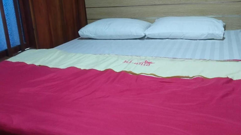 In dem Privatzimmer werden Handtücher und Bettwäsche bereitgestellt.