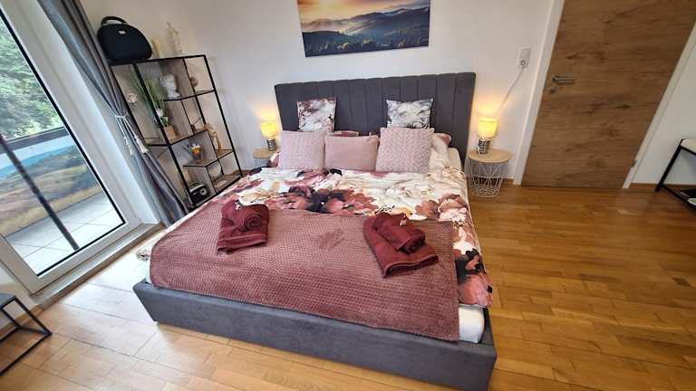 HomeW4 - Rosen Apartment ist eine Ferienwohnung, die einen Balkon und kostenlosen Privatparkplatz bietet.