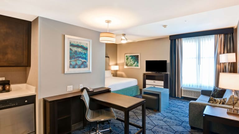 Die Zimmer sind klimatisiert und verfügen über ein Queensizebett und ein Sofabett in separaten Schlafzimmern. Zur Ausstattung gehören ein Schreibtisch, ein Safe, ein Kühlschrank, ein Herd, eine Mikrowelle, eine Tee-/Kaffeemaschine, ein Geschirrspüler sowie ein TV mit Satelliten- und Kabelfernsehen. Die Badezimmer sind mit einer Dusche und Badewanne, Haartrockner sowie Kosmetikartikeln ausgestattet. Es sind auch rollstuhlgerechte Zimmer verfügbar.