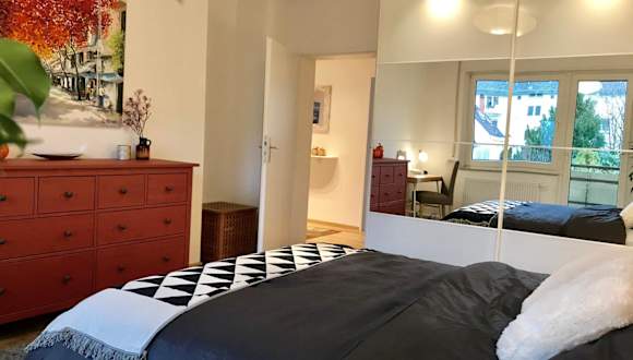 Die Wohnung umfasst ein Schlafzimmer sowie ein Wohnzimmer mit einem Flachbild-TV, das Kabelkanäle empfängt. Die voll ausgestattete Küche ist mit einem Kühlschrank und einem Geschirrspüler versehen. Zudem gibt es ein Badezimmer mit einem Haartrockner. Handtücher und Bettwäsche werden gestellt.
