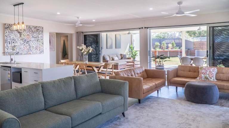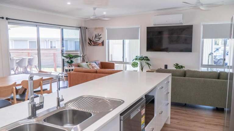 Hooked On Agnes - Agnes Water bietet Übernachtungsmöglichkeiten in einem klimatisierten Ferienhaus mit Balkon und kostenlosem WLAN. Das Ferienhaus ist mit einem Flachbild-TV und einer gut ausgestatteten Küche ausgestattet.