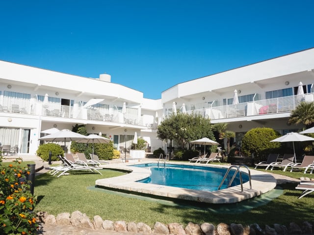 Hoposa Montelín Apartments, genießen Sie den Urlaub ohne Stress, wie im eigenen Haus, in einem kleinen Gebäude mit familiärer Atmosphäre. Nur 24 Studios. Alles Notwendige vorhanden. Garten mit Pool und Solarium mit Hängematten und Sonnenschirmen ausgestattet. Sie können auch alle Annehmlichkeiten der „Villaconcha Apartments, die sich nebenan befinden und dem gleichen Eigentümer gehören, “ mitbenutzen. Der Empfang ist im benachbarten Villaconcha Aparthotel, gegenüber der Montelín Apartments, dort müssen Sie auch Ihren check-in machen.