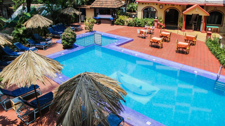Das Hotel verfügt über einen großen Außenpool, in dem Sie sich entspannen und die Sonne Goas genießen können. Es gibt auch einen Tourenschalter, der Tagesausflüge organisiert, sowie einen Wäscheservice und einen Schönheitssalon.