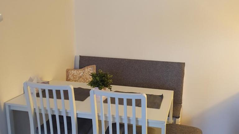 Die Ferienwohnung besteht aus einem Schlafzimmer, einem Wohnzimmer und einer voll ausgestatteten Küche mit Kühlschrank und Kaffeemaschine. Des Weiteren verfügt sie über ein Badezimmer mit Dusche und kostenlosen Pflegeprodukten. Handtücher und Bettwäsche werden bereitgestellt.