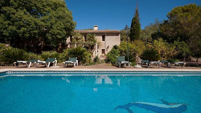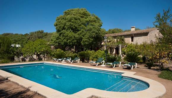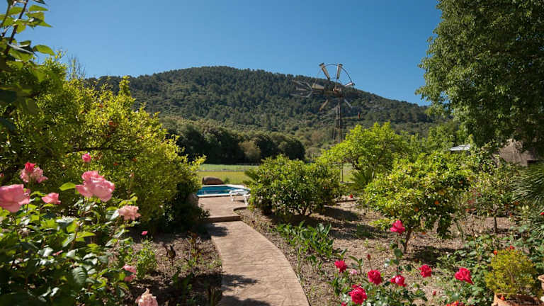 Hort Den Gelos Campanet Mallorca ist eine Villa mit einem Außenpool und Poolblick. Die Unterkunft bietet eine entspannte Atmosphäre und eine komfortable Ausstattung mit Blick auf die umliegenden Berge, ideal für einen erholsamen Aufenthalt.