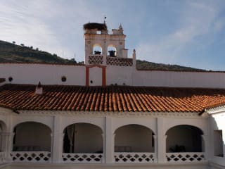 Dieses kleine, charmante Hotel empfängt Sie in der faszinierenden Landschaft von La Parra, Badajoz. Es ist ein kleines Juwel, das von der sorgfältigen Ansammlung von Hotels RUSTICAE ausgewählt wurde, in Spanien, Portugal, Marokko und anderen mediterranen Ländern und Südamerika. Hotels von Rusticae sind sehr individuell geführt und die Besitzer legen besonderen Wert auf die Erfüllung der persönlichen Wünsche ihrer Gäste. Immer authentisch, diese Hotels befinden sich in natürlichen oder historischen Orten. Dort werden Sie schließlich das Leben mit Ruhe genießen. Dieses Klostergebäude aus dem 17. Jahrhundert liegt im Herzen der Landschaft im Bereich Tierra de Barros der Extremadura. Es befindet sich im Dorf La Parra in der Stadt von Badajoz. Der Ort ist so ruhig, dass sogar die Störche sind nicht geflohen. Deshalb ist es nicht an die Kinder angepasst. Das Schwimmbad in der Mitte von weißen Mauern scheint wie eine Postkarte von Essaouira oder von Tunisien. Das Hospederia Convento de la Parra bewahrt bis heute noch viele ursprüngliche Elemente wie einen Kreuzgang. Freuen Sie sich auf eine herrliche Aussicht über die Landschaft.Regionale Gerichte und Weine aus dem Anbaugebiet Ribera del Guadiana genießen Sie im eleganten Restaurant. Die Mahlzeiten werden im Sommer im Kreuzgang serviert.
