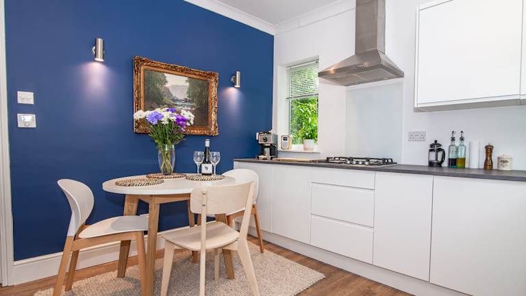 Das Ferienhaus verfügt über 2 Schlafzimmer, ein Wohnzimmer und eine voll ausgestattete Küche mit Kühlschrank und Wasserkocher. Es gibt 2 Badezimmer, ausgestattet mit einer Dusche und kostenlosen Pflegeprodukten. Handtücher und Bettwäsche werden bereitgestellt.