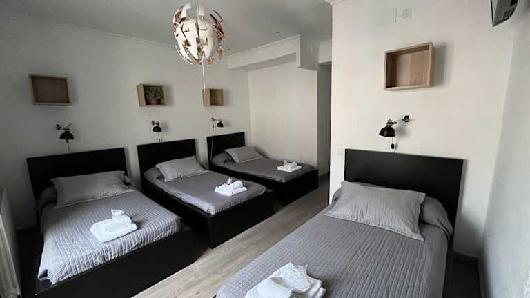 Sehr kleines Zimmer, für 6 Personen. Zwischen 2 Stockbetten ist nichtmal ein Meter Platz. Super nettes Personal. Keine Handtücher, sehr sehr spartanes Badezimmer. Lage ist Ok, sehr ruhig zumindest.