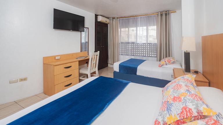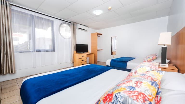 Die Zimmer im Hostal North Seymour sind komfortabel und mit modernen Annehmlichkeiten ausgestattet. Jedes Zimmer verfügt über einen Flachbild-Kabel-TV und einige bieten sogar eine Terrasse oder eine Veranda, auf der Sie die frische Meeresluft genießen können. Das private Badezimmer ist mit einer Badewanne oder einer Dusche ausgestattet.