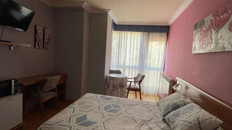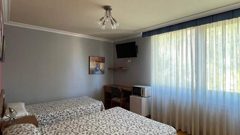 Die Zimmer im Hostal Santiago 2 sind komfortabel eingerichtet und bieten moderne Ausstattung. Jedes Zimmer verfügt über ein eigenes Bad, einen Smart-TV, Heizung und WLAN. Einige Zimmer sind mit einem Kühlschrank und einer Mikrowelle ausgestattet, und zwei Zimmer bieten zudem den Vorteil einer eigenen Terrasse.