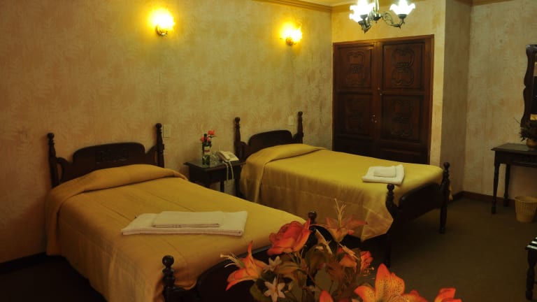 Die Zimmer im Hostal Sucre sind komfortabel eingerichtet und bieten Ihnen alles, was Sie für einen angenehmen Aufenthalt benötigen. Jedes Zimmer verfügt über ein eigenes Bad mit einer Dusche und kostenlosen Pflegeprodukten. Ein Flachbild-TV sorgt für Unterhaltung und Gartenblick schafft eine entspannte Atmosphäre.