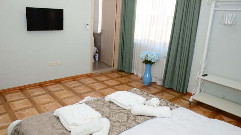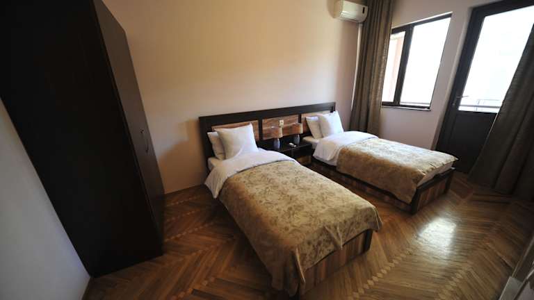Die Zimmer im Batumi Globus Hostel sind hell und sonnig gestaltet und verfügen über Holzböden und einen Kühlschrank. Die Gemeinschaftsbäder und -WCs befinden sich auf dem Flur und werden regelmäßig gereinigt. Das Hostel bietet kostenfreies WLAN und eine 24-Stunden-Rezeption, um den Gästen den bestmöglichen Komfort zu bieten.