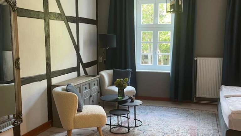 Die Gutshauszimmer sind mit einem Flachbild-TV ausgestattet. Handtücher und Bettwäsche werden bereitgestellt.