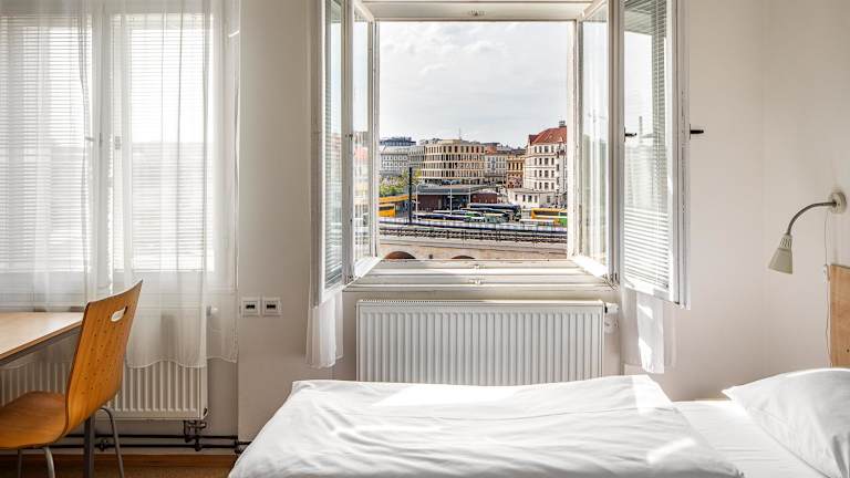 Die klimatisierten Zimmer im Hostel Florenc sind komfortabel und mit einem Schreibtisch ausgestattet. Sie bieten den Gästen einen angenehmen Aufenthalt während ihres Besuchs in Prag.