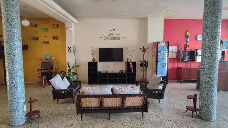 Das Flying Dog Hostel Iquitos bietet eine günstige Unterkunft in der Nähe der Plaza de Armas in Iquitos. Mit kostenfreiem WLAN und einem kontinentalen Frühstück ist es eine gute Wahl für Reisende, die nach einer einfachen, aber komfortablen Unterkunft suchen. Die Gemeinschaftsküche und die persönlichen Spinde bieten zusätzlichen Komfort, während die Nähe zum Flughafen und zum Markt Mercado de Belen das Hotel zu einem idealen Ausgangspunkt für Erkundungen in der Umgebung machen.
