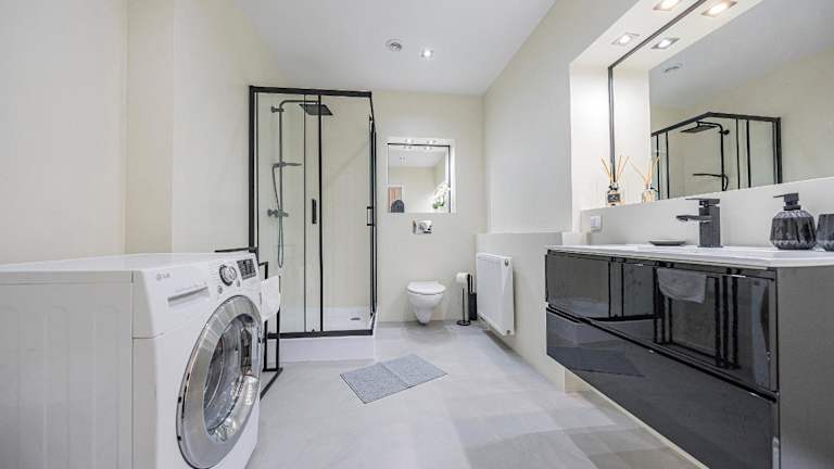 Die Wohneinheiten verfügen über eine voll ausgestattete Küche mit einem Esstisch. Dazu gehören ein Kühlschrank, ein Geschirrspüler, ein Ofen, eine Kaffeemaschine sowie ein Wasserkocher, die zur Selbstversorgung einladen.