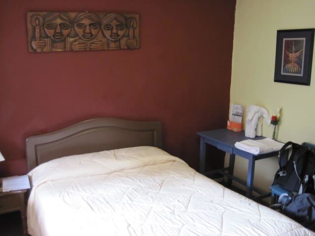 Das Hostal Macondo ist eine charmante Unterkunft im historischen Zentrum von Cuenca. Hier können Sie in einem Gebäude im Kolonialstil übernachten und von kostenfreiem WLAN und Frühstück profitieren. Der hübsche Garten lädt zum Entspannen ein und das Museum für moderne Kunst ist nur wenige Minuten entfernt. Genießen Sie die gemütlichen Zimmer mit Holzmobiliar und Heizung, und starten Sie den Tag mit einem kontinentalen Frühstück. Im Garten oder im Innenhof können Sie Getränke aus der Cafeteria genießen und in den Hängematten oder schattigen Galerien entspannen. Das Hostal Macondo ist auch günstig gelegen, nur wenige Kilometer vom Stadium Alejandro Serrano Aguilar und dem internationalen Flughafen Mariscal Lamar entfernt.