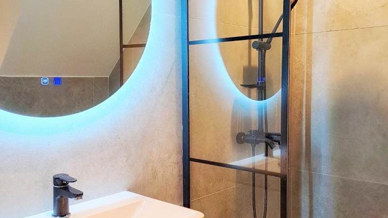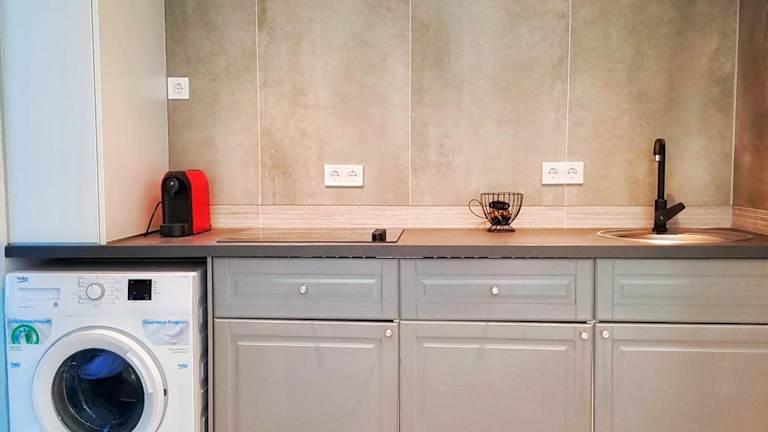 Die Ferienwohnung umfasst ein Schlafzimmer, ein Wohnzimmer, eine voll ausgestattete Küche mit Kühlschrank und Kaffeemaschine sowie ein Badezimmer mit Dusche und Haartrockner. Handtücher und Bettwäsche werden bereitgestellt.